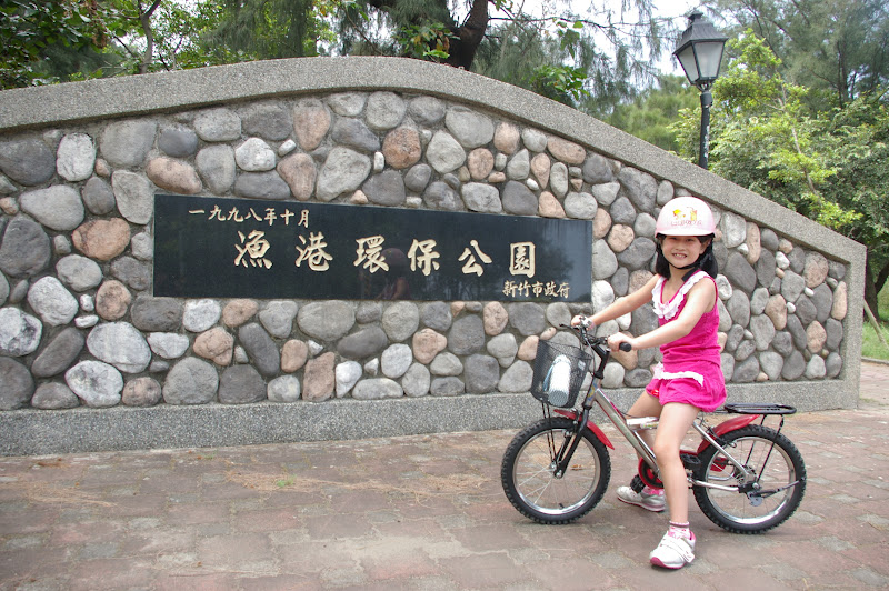 這兩天Amy清晨都會咳嗽,雖然昨晚已看過醫生,但早上還是咳的很厲害,就幫Amy請假一天,讓她可以睡久一點.早上10點多,我們兩個都很無聊,就去南寮練習騎腳踏車,以前還有輔助輪的時候有帶Amy來過一次,兩輪的還是第一次來.